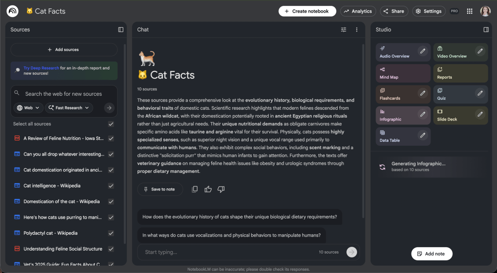 NotebookLM is a tool from Google that lets you aggregate a multitude of resources and generate accessible content. And not only can you upload all of your sources, but you can use the Studio to create assets like an audio overview in conversational podcast-style that you can listen to as you commute to work in the morning.